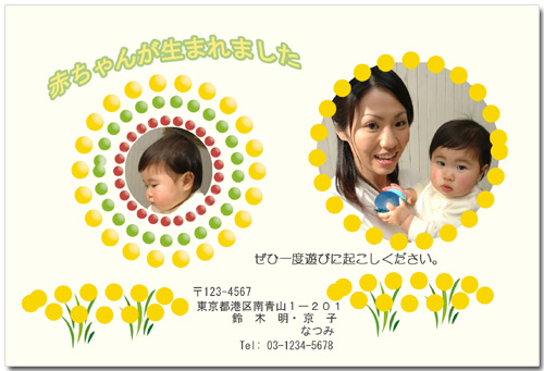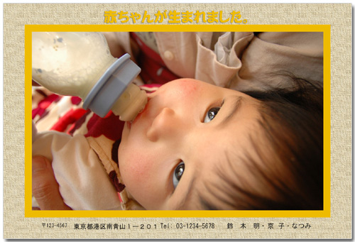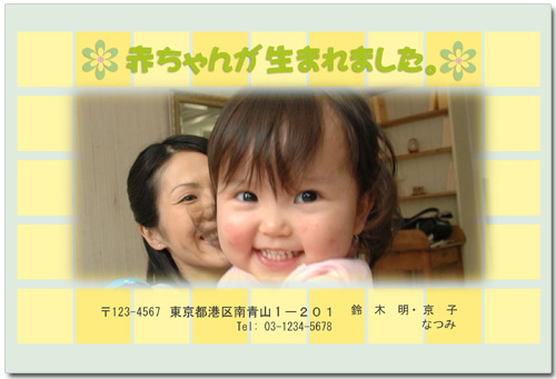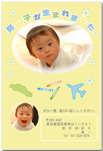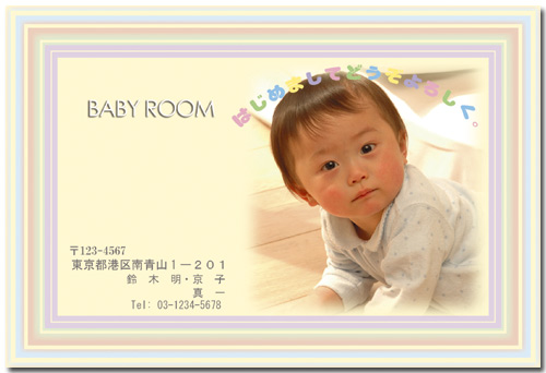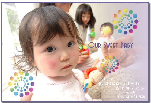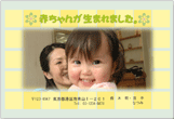 | フォトスタ BABY POSTCARDデザインテンプレート選んで画像と文字を、ご自由にアレンジしてみてください。 下記のBABY POSTCARDは拡大表示されます。