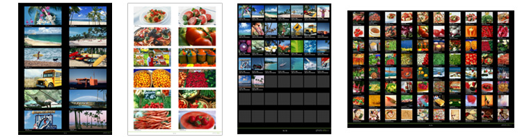 | ファイル名や撮影日も表示されるインデックスプリントです。 サイズは2L縦(7x7=49カット)、2L縦(8x5=40カット)、A4縦(2x6=12カット)、A4横(10x8=80カット)の他6種類、 背景色も 白または黒を選択できます。画像の表示方向(縦横)も注文時に設定でき、 お好みのインデックスプリントを簡単に注文できます。 |